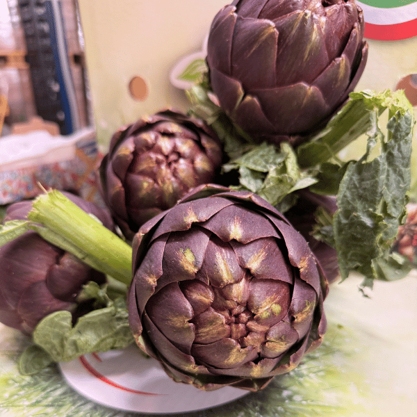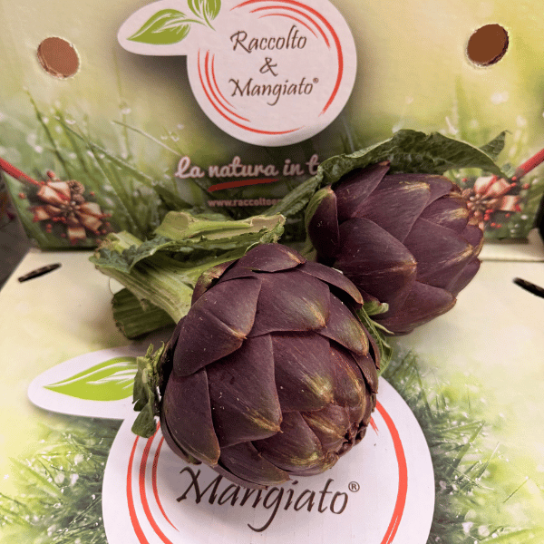 Il carciofo varietร Romanescoย ha una forma sferica con sfumature rosso-violacee e ha unโottima resistenza nel mantenimento del gusto e della freschezza. I carciofi sono ricchi di vitamine A, C, del gruppo B e PP, oltre ad alti concentrati di ferro, zinco, magnesio e potassio. Pezzatura medio-grossa. Calibro 7-8ย Categoria: I