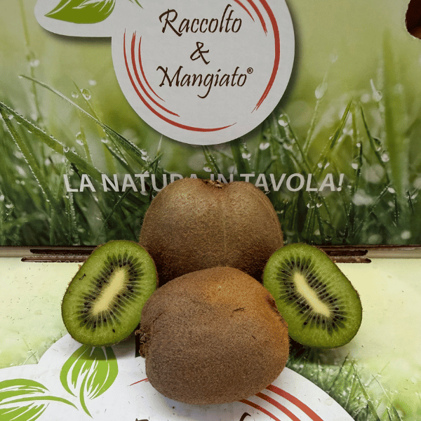 La buccia del kiwi รจ perfetta per proteggere la polpa dai raggi solari, che distruggerebbero la vitamina C. La polpa รจ di un intenso color verde, soda, dolce ed acidula. I semi, piccoli e neri, sono disposti a raggiera attorno al centro del frutto, e non sono avvertiti quando si mangia il frutto.