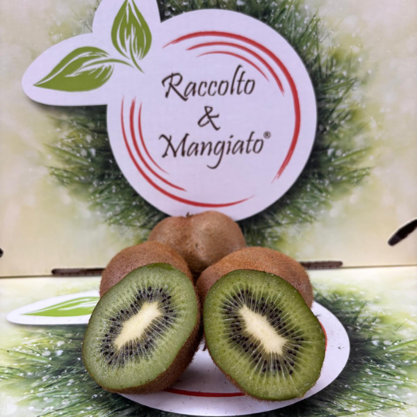 La buccia del kiwi รจ perfetta per proteggere la polpa dai raggi solari, che distruggerebbero la vitamina C. La polpa รจ di un intenso color verde, soda, dolce ed acidula. I semi, piccoli e neri, sono disposti a raggiera attorno al centro del frutto, e non sono avvertiti quando si mangia il frutto.