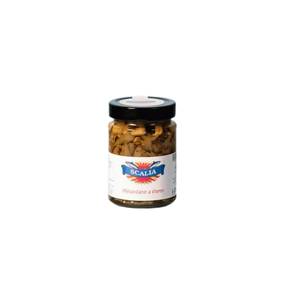 INGREDIENTI: ย Melenzane, Olio extra vergine di oliva, Olio di semi di girasole, Origano, Aglio Basilico, Peperoncino, tracce di aceto
