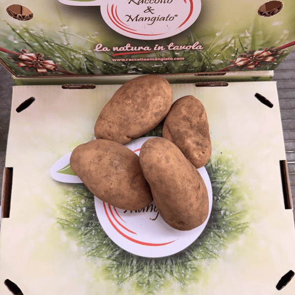 Leย Patate novelle siciliane, caratteristiche per la buccia sottile, vengono raccolte quando la maturazione non รจ completa. Sono a breve conservazione e andrebbero bollite con la buccia.