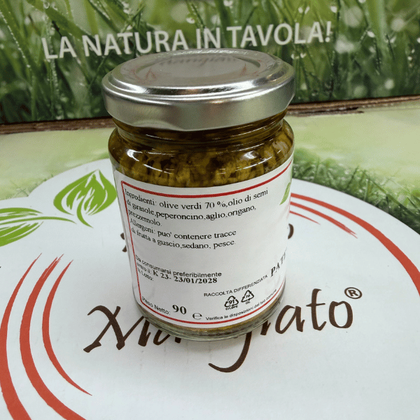 INGREDIENTI: olive verdi 58,3%, olio di semi di girasole, peperoncino, origano, aceto, sale.