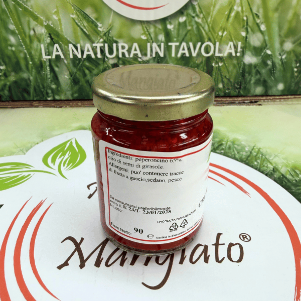 INGREDIENTI: peperoncini piccanti 77,2%, olio di semi di girasole, origano, sale e aceto.