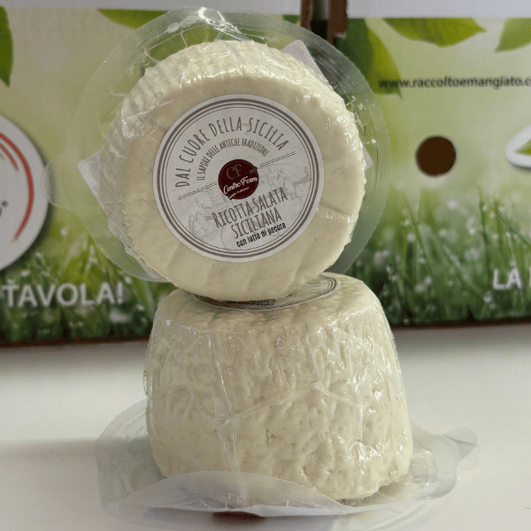 La Ricotta Salata รจ un latticino magro di breve stagionatura , pasta semidura di colore bianco.ย ย Nasce per conservarsi piรน a lungo di quella fresca. Non รจ un vero e proprio formaggio ma si consideraย un sottoprodotto della lavorazione del latte.