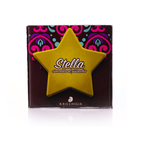 Realizzata con ingredienti di alta qualitร , ogni stella offre un equilibrio perfetto tra la dolcezza del cioccolato e il sapore intenso e aromatico del pistacchio, regalando unโ€™esperienza sensoriale raffinata.